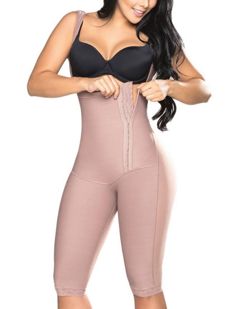 High Compression Tummy Control Mid-leg Faja With Sleeves