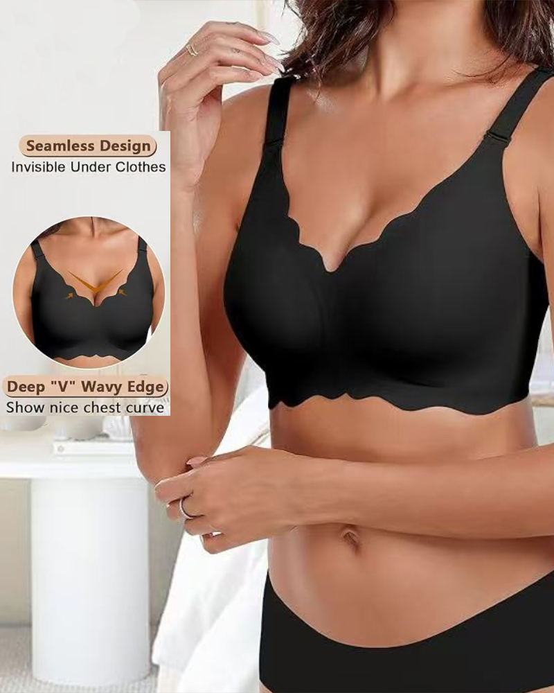 Seamless Ice Silk Wavy Edge Wire-Free Push-Up Bra