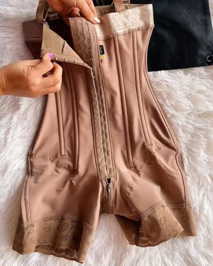 Buckle Front Open Bust Crotch Zipper Tummy Control Shapewear Bodysuit