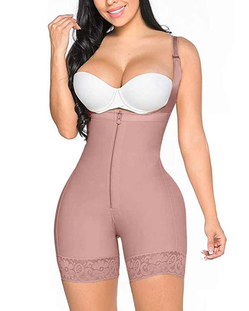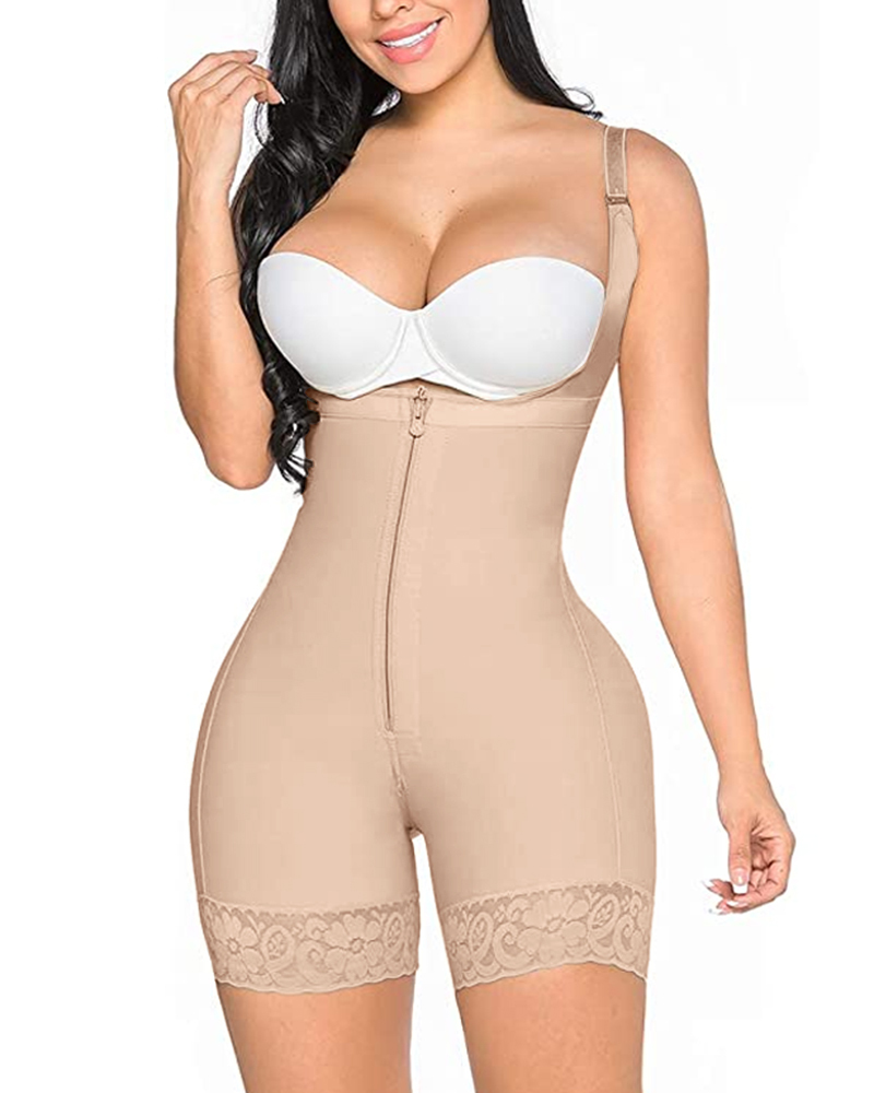 Invisible Zipper High Back Slimming Fajas Lace Bodysuit Body Shaper
