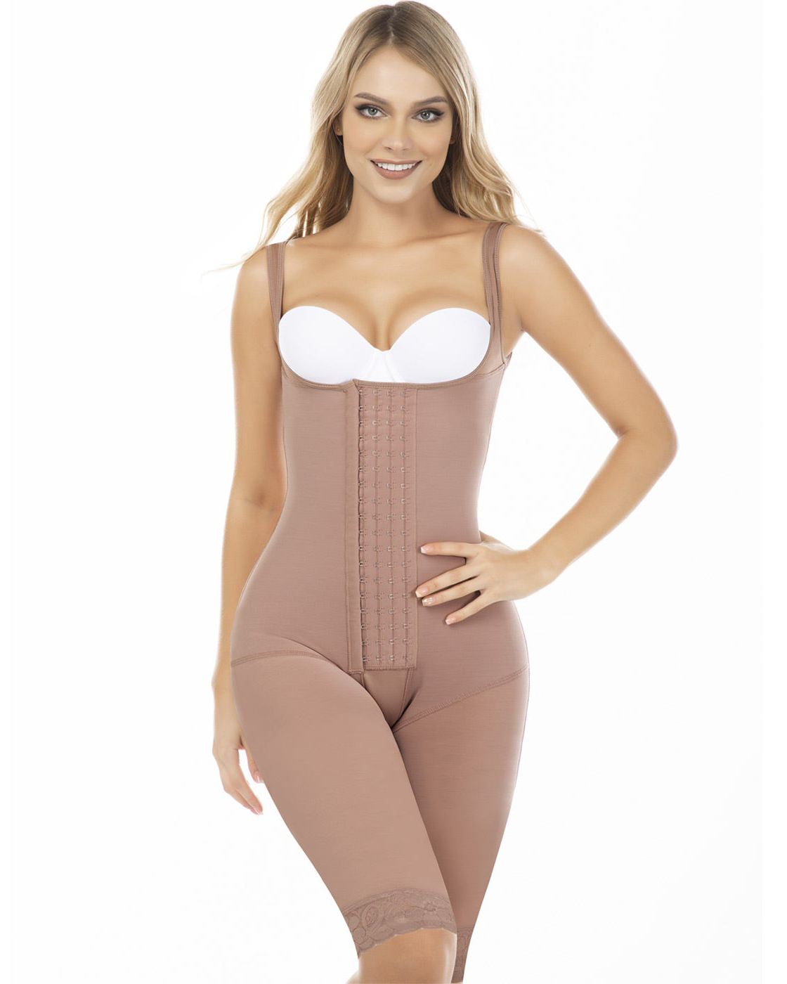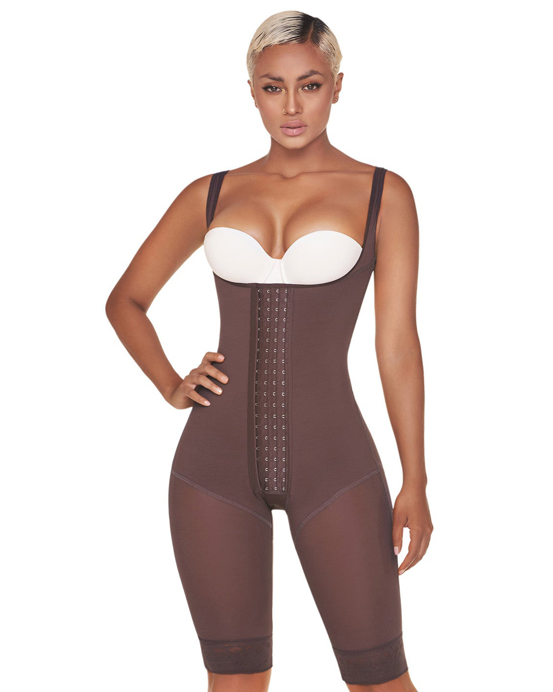 Liposuction Postsurgical Knee Length Lipo Body Shaper for Women | Open Bust with Front Closure
