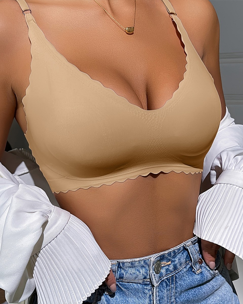 Seamless Ice Silk Wavy Edge Wire-Free Push-Up Bra