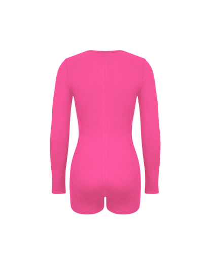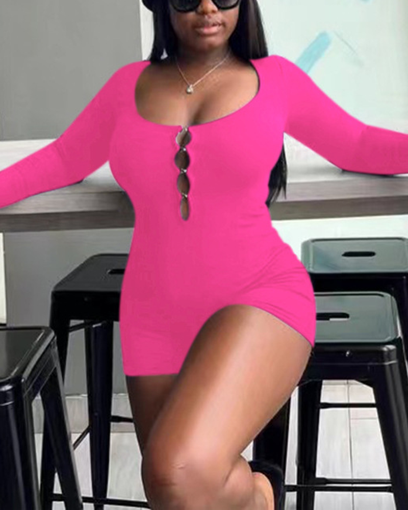 Tight-Fitting Hollowed-Out Round Neck Long-Sleeved Bodysuit