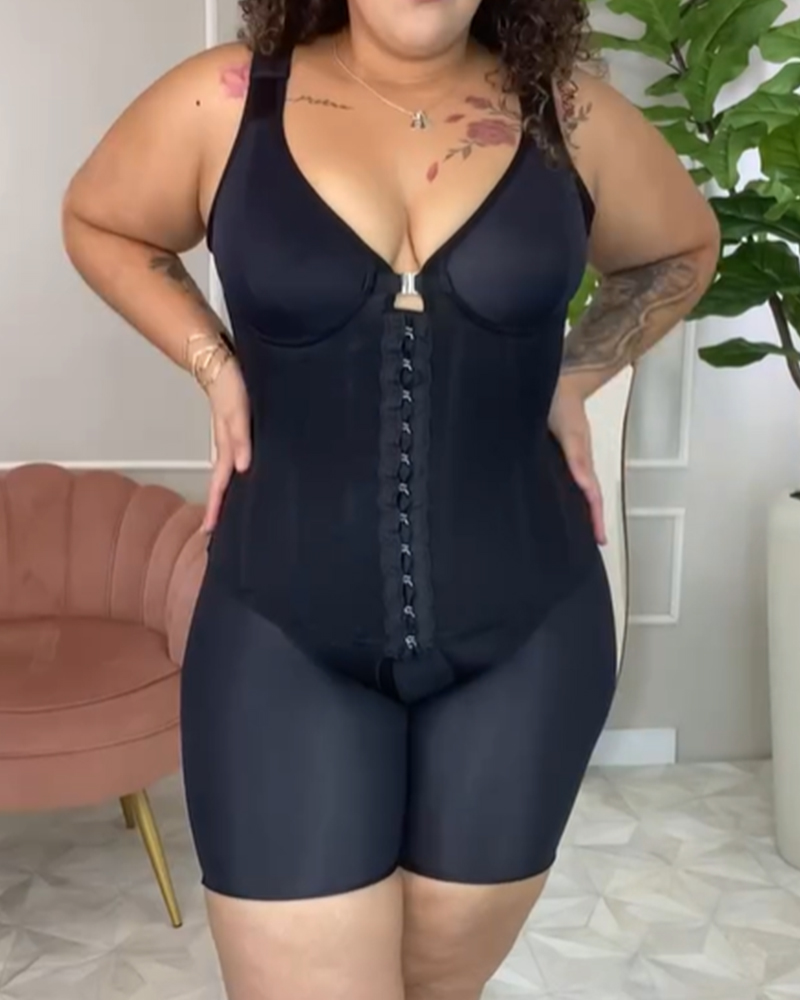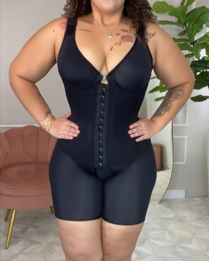 Deep V High Compression Body Shaper with Metal Bust Detail