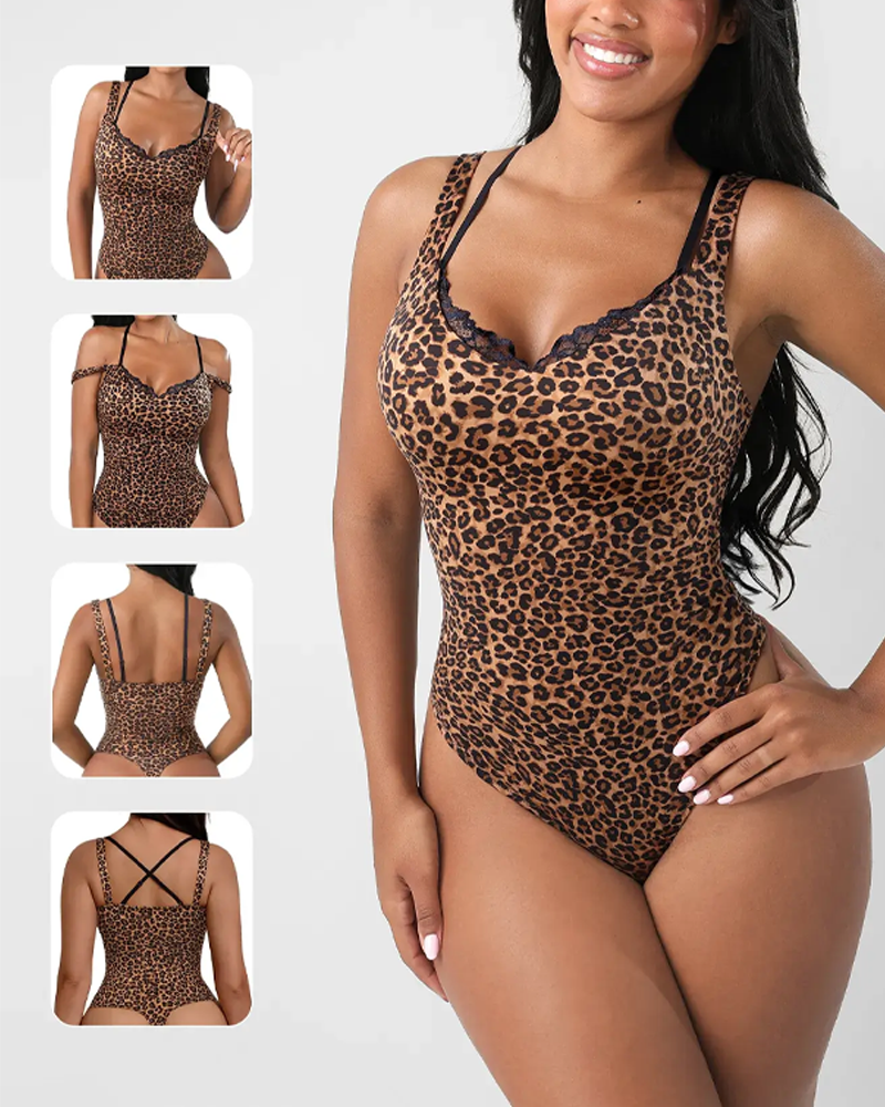 Comfortable V-Neck Lace Waist-Cinching Thong Bodysuit (Pre-Sale)