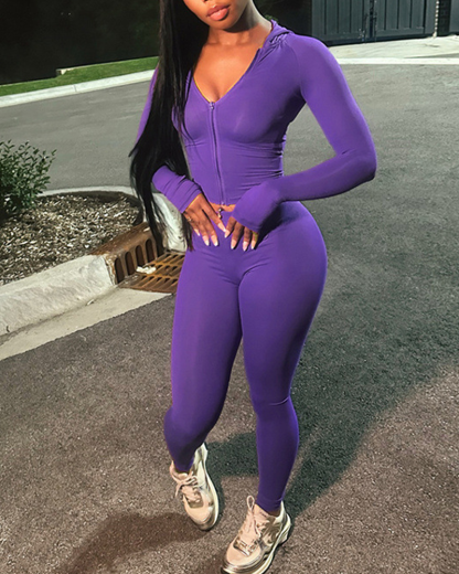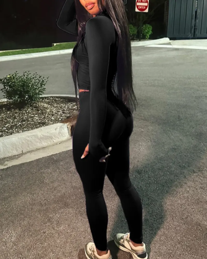 Casual Slim-Fit V-Neck Long-Sleeved Top And High-Waisted Skinny Pants Two-Piece Set