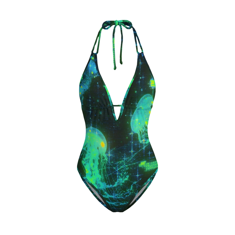 Contrast V Neck One-Piece Swimsuit 2603013162