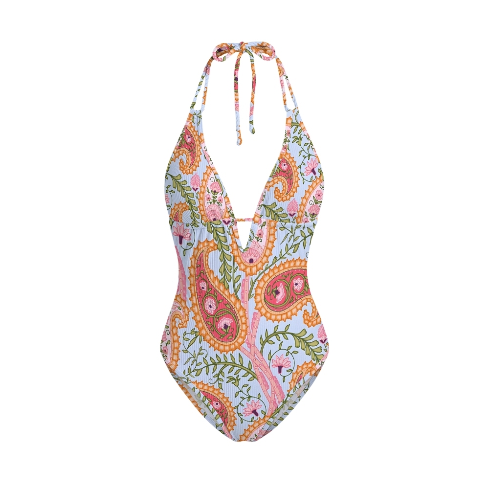 Contrast V Neck One-Piece Swimsuit 2603013288
