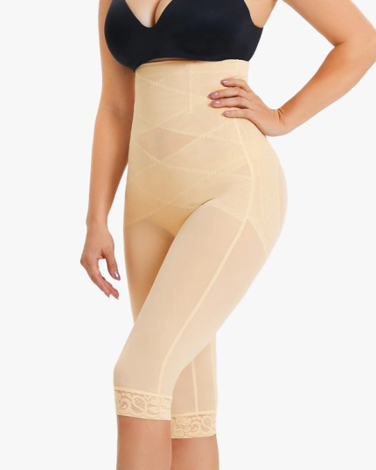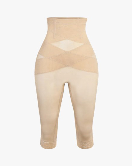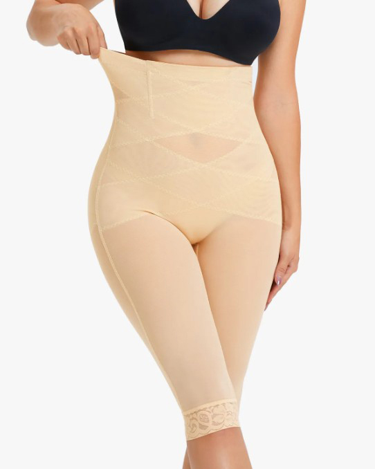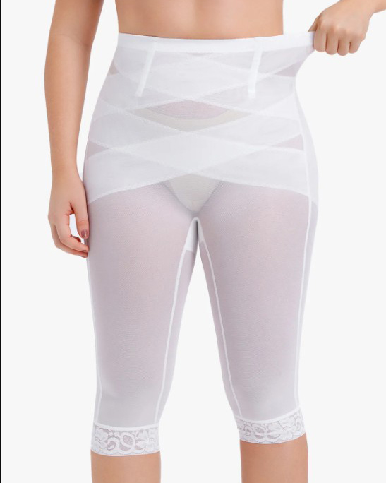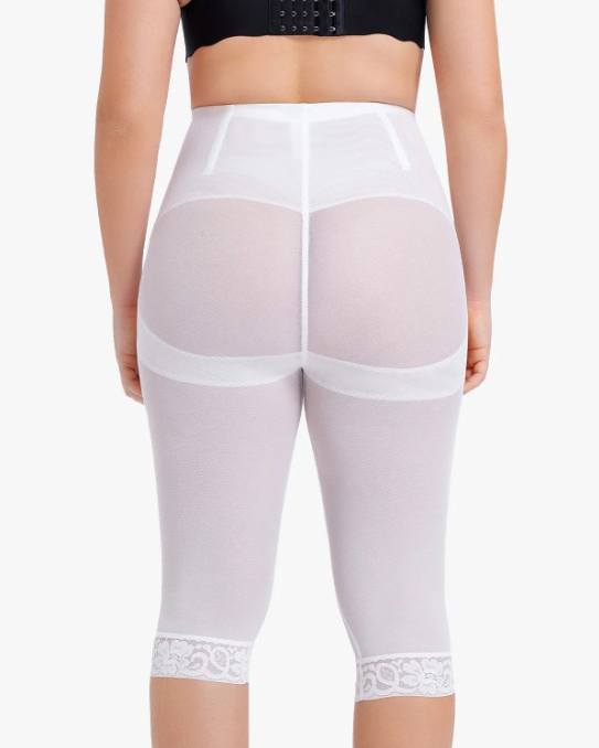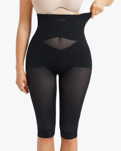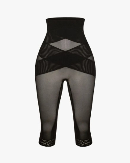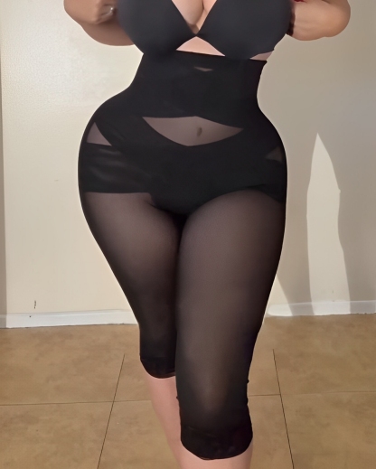 High Waist Lace Trim Sheer Mesh Shaper Pants