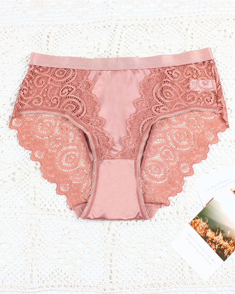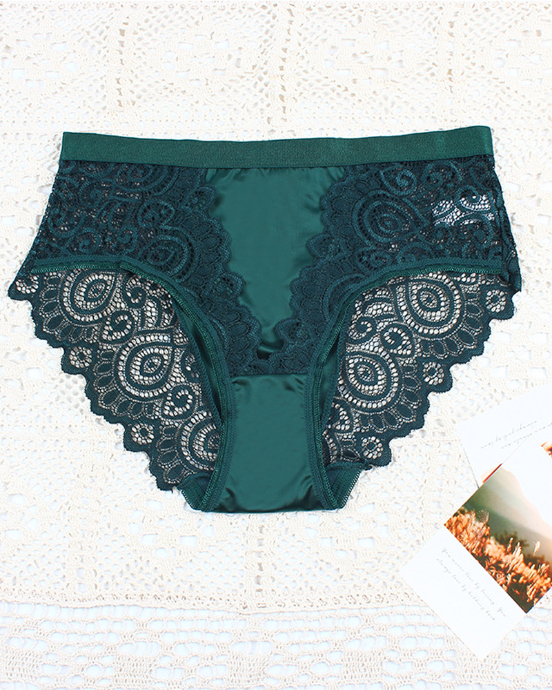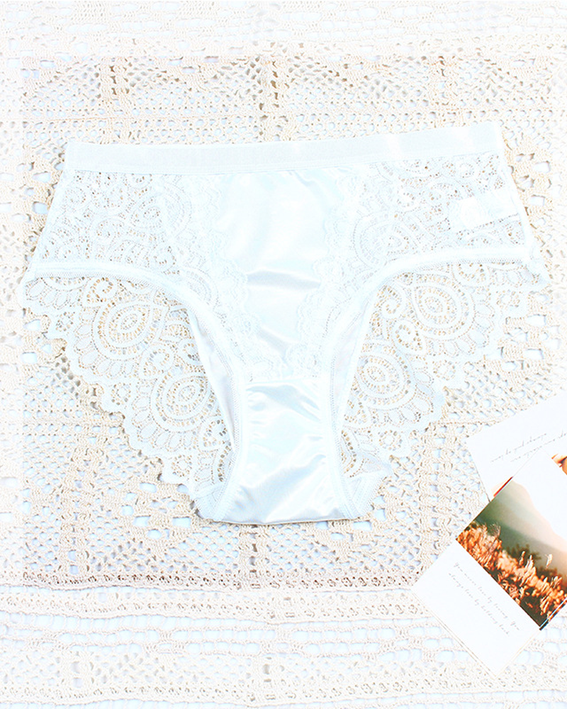 High-Waisted Breathable Color-Blocked Lace Floral Design