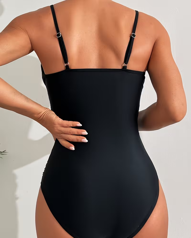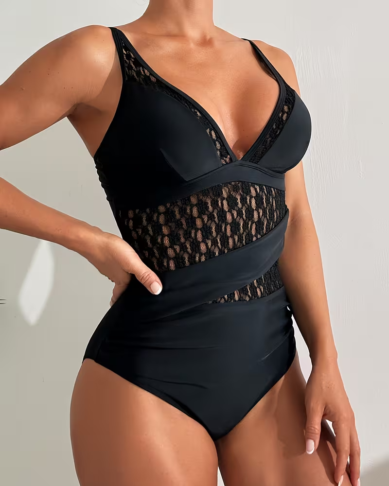 Lace Splicing Deep V One-Piece Swimsuit