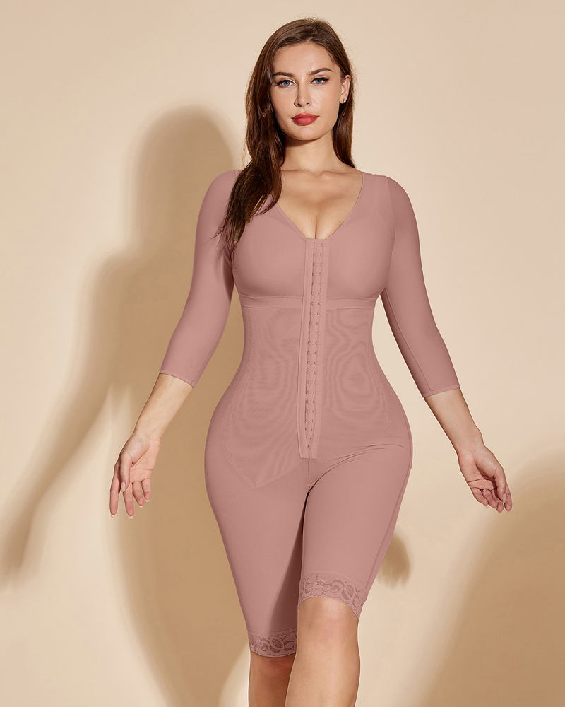 Post-Surgery Double Compression Garments Faja With Sleeves & Bra Tummy Control Shapewear Slimming Fajas Lace Body Shaper