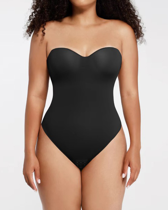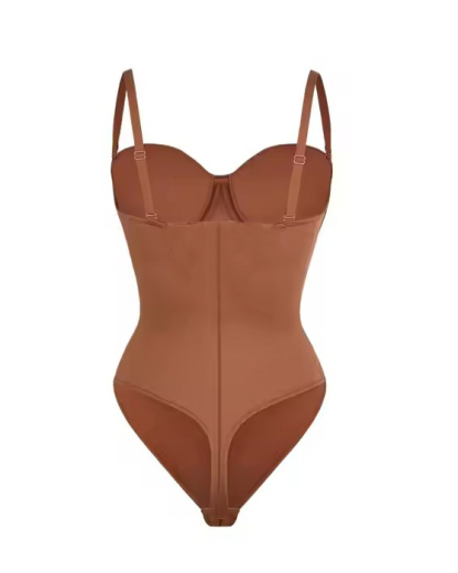 Removable Straps Satin Slimming Shapewear Thong Bodysuit