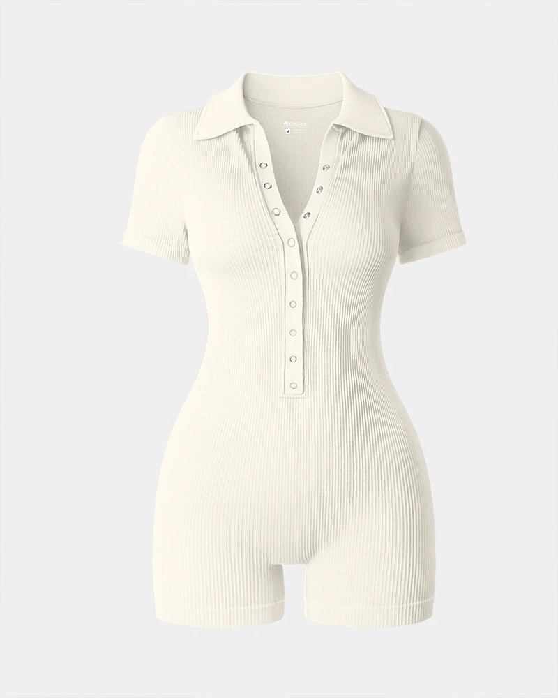 Ribbed V-Neck Elastic Waist-Cinching Tummy-Control Sports Yoga Bodysuit