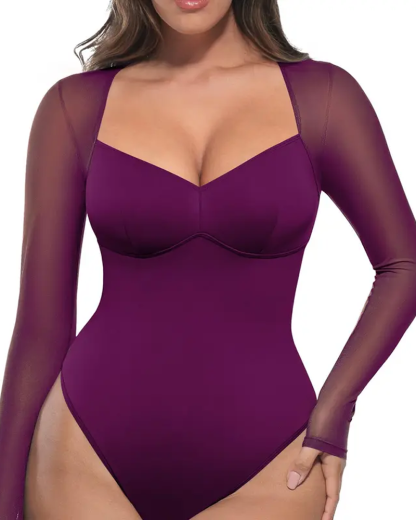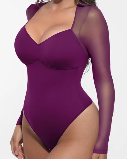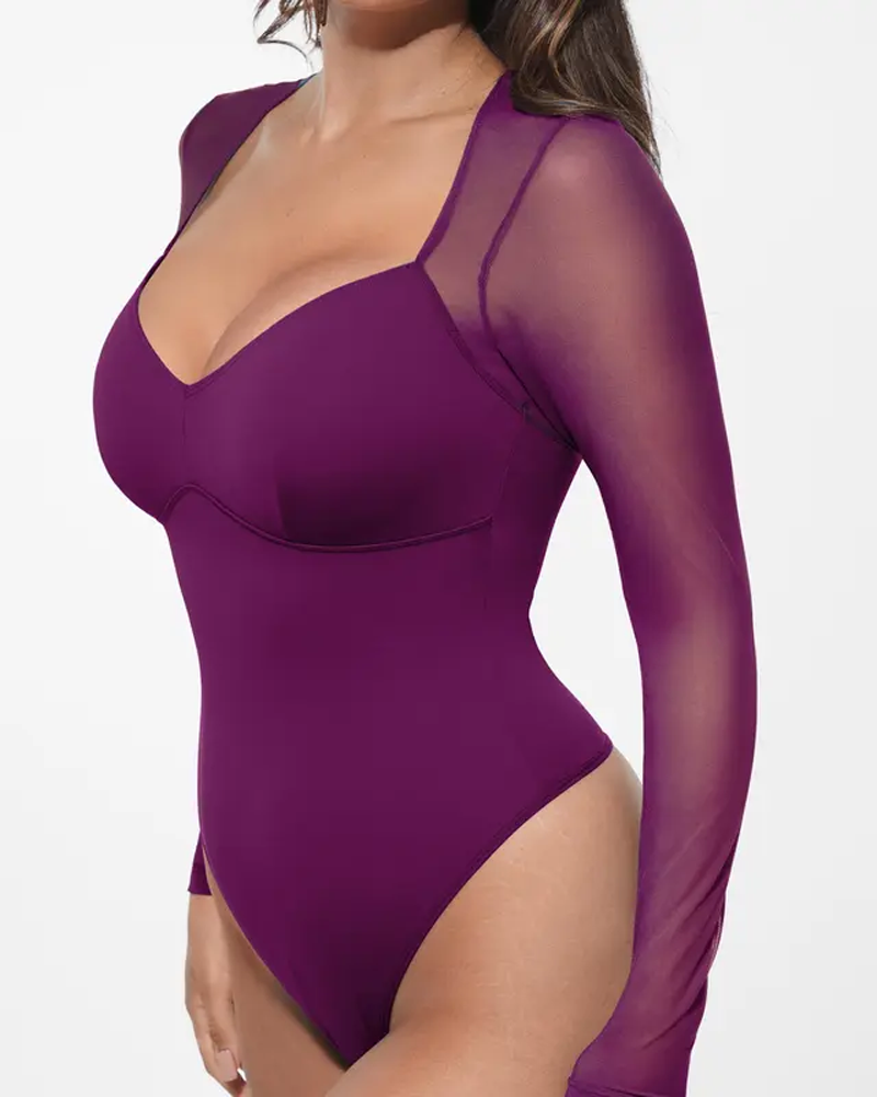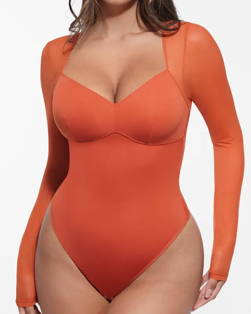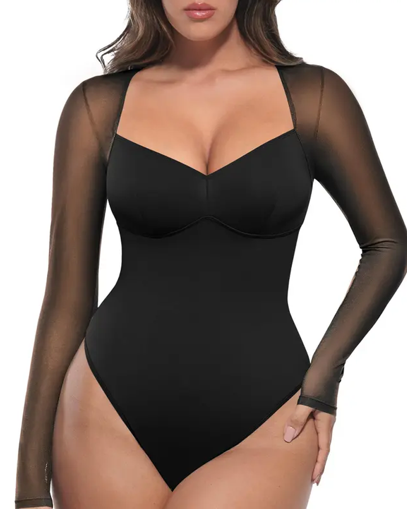 Sheer Mesh Long Sleeve Shapewear Bodysuit (Pre-Sale)