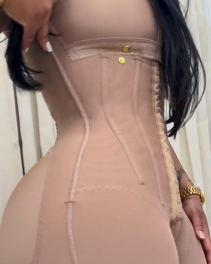 Steel-Boned Abdominal Support Mid-Length Sleeve Shapewear