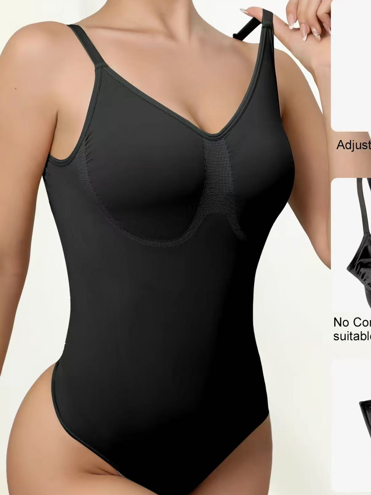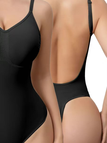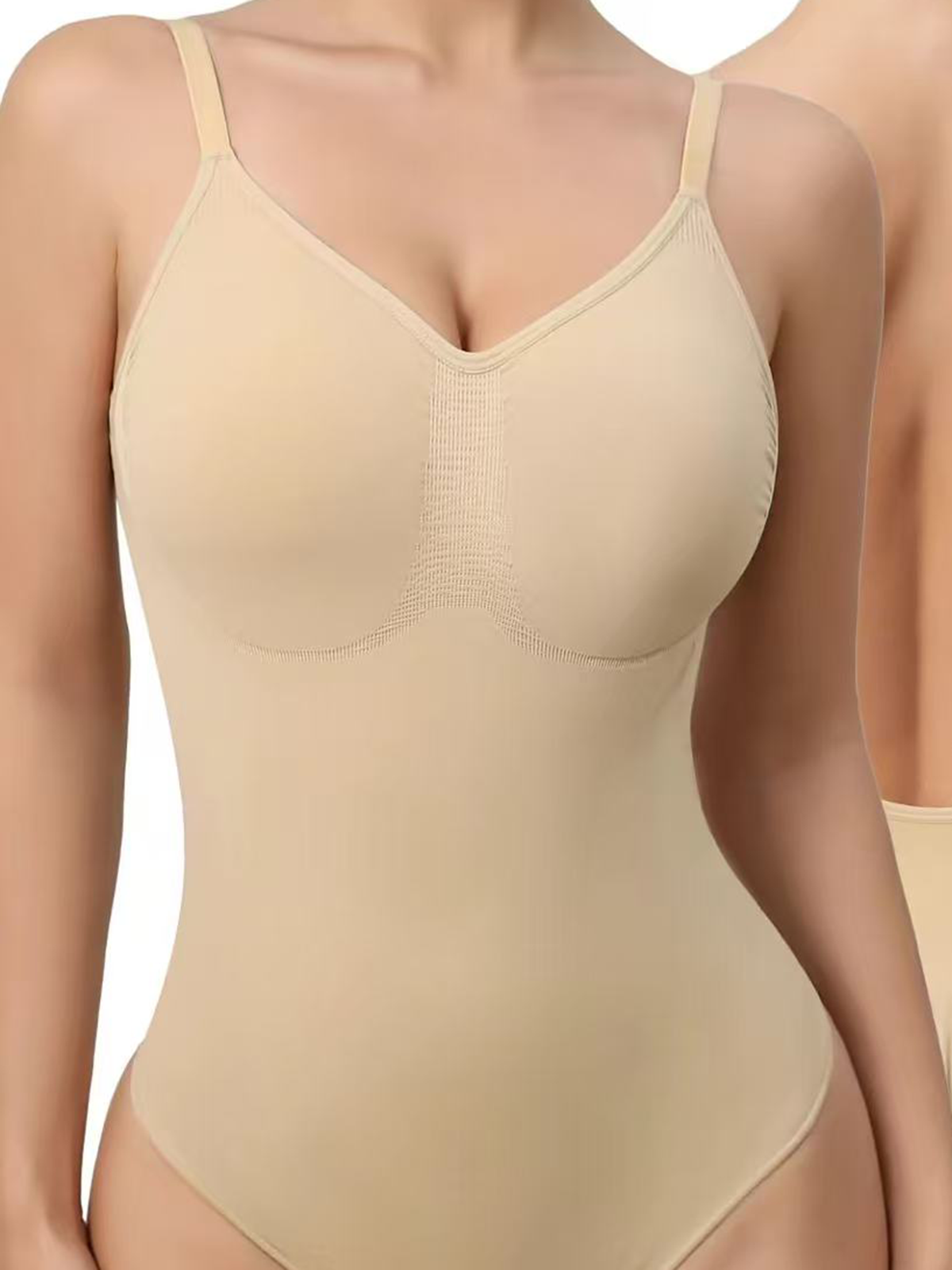 V Neck Seamless Thong Breathable Tummy Control Shapewear