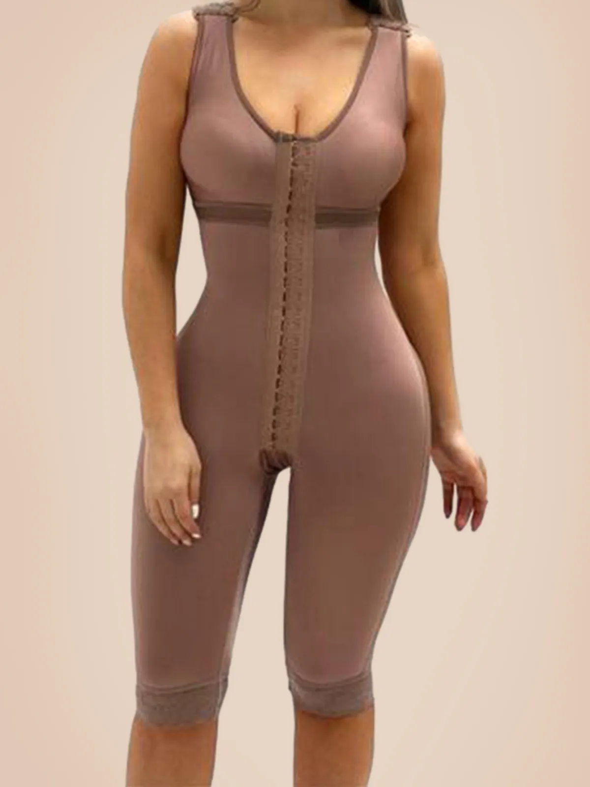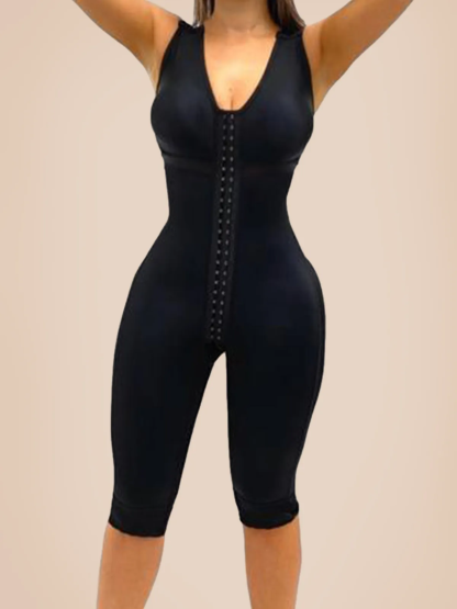 V Neck Sleeveless Knee Length Shapewear With Bra And Wide Shoulder Straps Butt-Lifting Bodysuit For Women
