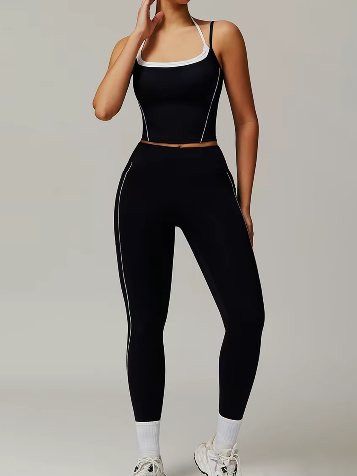 Women's Colorblock Two in One High Stretch Sports Camisole And Leggings Set