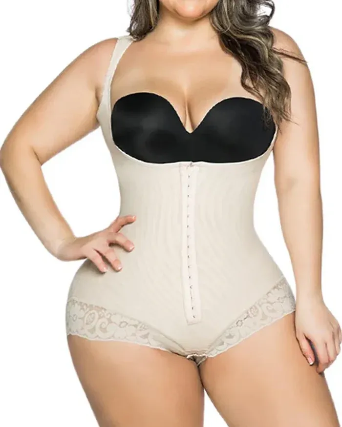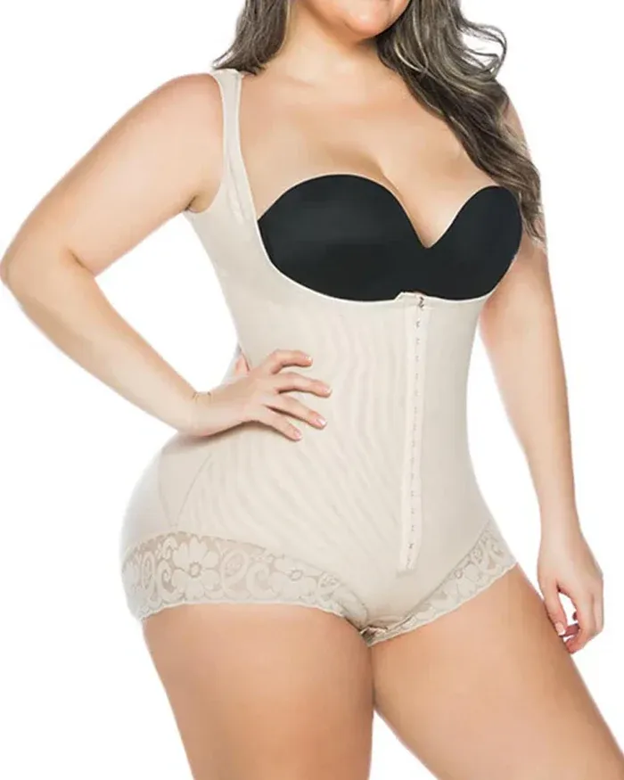 Women's Lace Bodysuit With Armhole Sleeves Adjustable Breast Support Tummy Control Bodyshaper