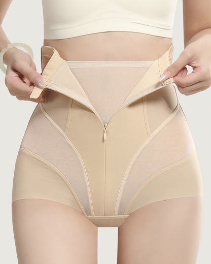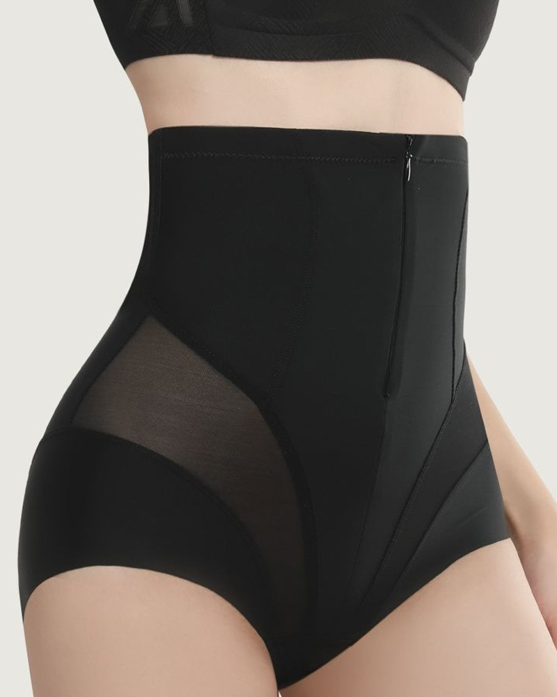 Zipper High-Waist Mesh Tummy Control Butt Lifter Shapewear Shorts